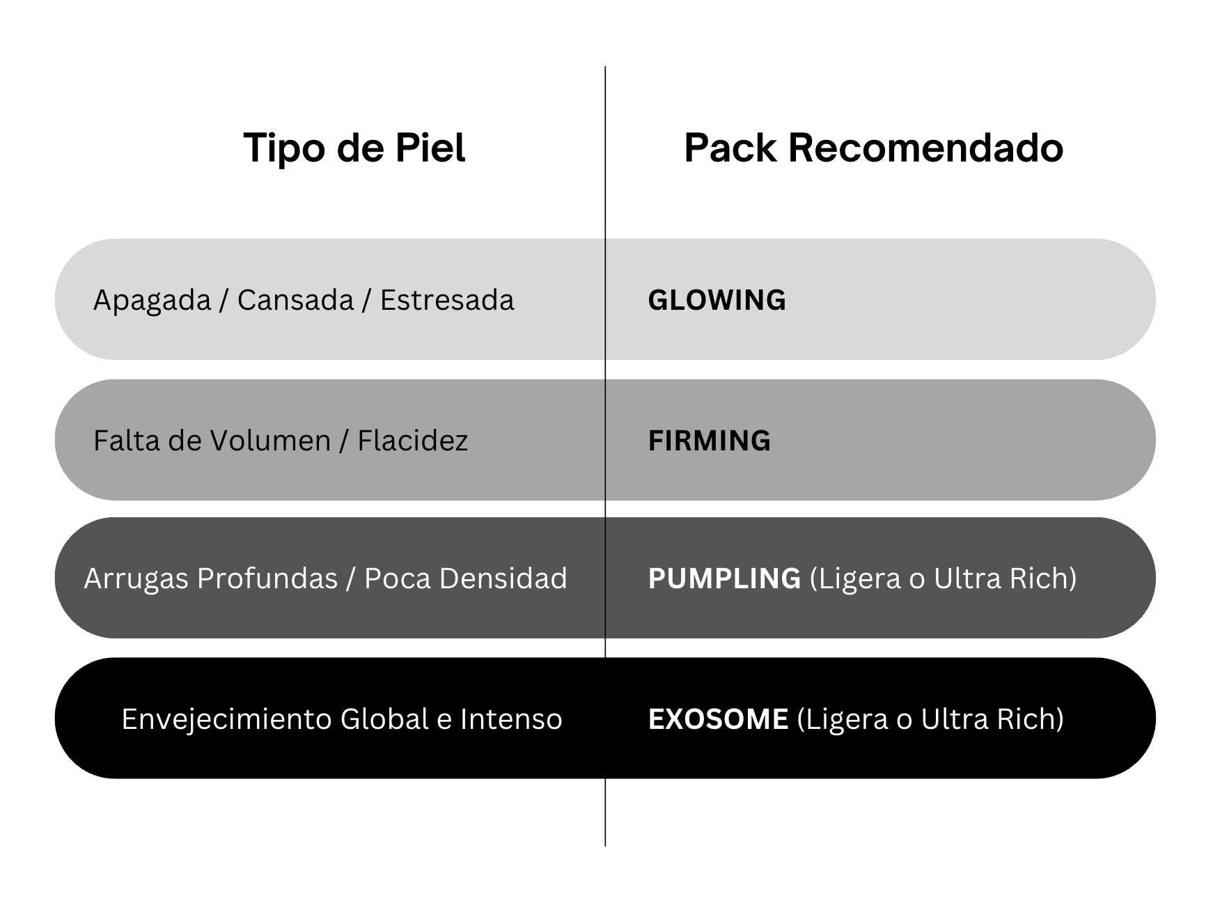 Para un diagnóstico más preciso y la elección del pack ideal para ti, siempre recomendamos la consulta con tu esteticista más cercana y de confianza.